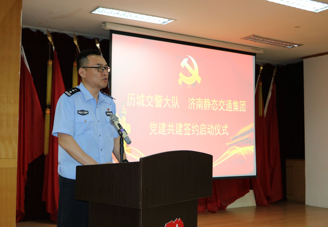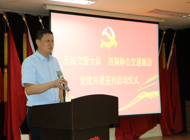 市交警支隊黨委副書記、政委段富勇,市國資委黨委委員、副主任謝紅兵,歷城交警大隊黨總支書記、大隊長孫如彬,濟南靜態(tài)交通集團黨委書記、董事長李培鋼等參加共建簽約揭牌儀式并講話。儀式由歷城交警大隊黨總支副書記、政委崔科軍主持。